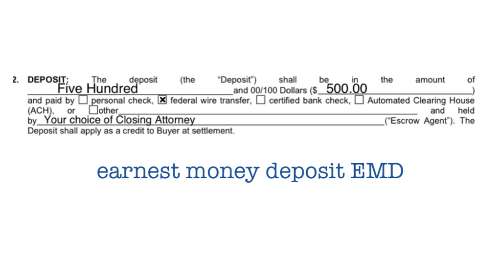 - the EMD amount will be listed on the contract and can go towards your closing cost, downpayment or refunded back to you at closing.