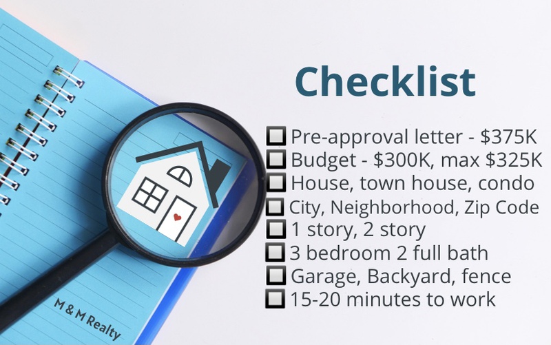 - provide M & M Realty your house wish list so we can find and schedule homes for you to consider